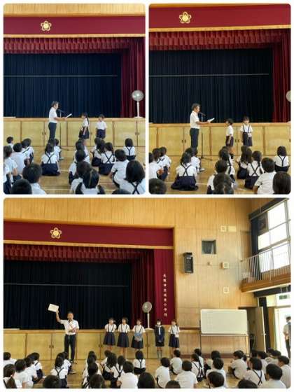 そのあと、夏休みに頑張った児童の表彰がありました。