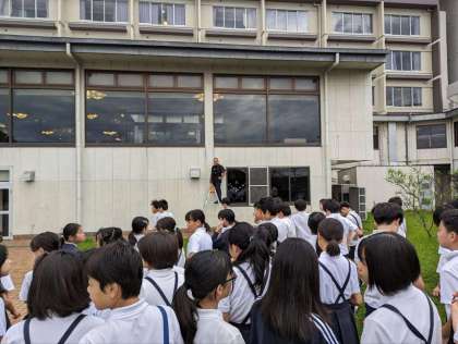 おはようございます。今朝はみんな集合して記念撮影をしました。