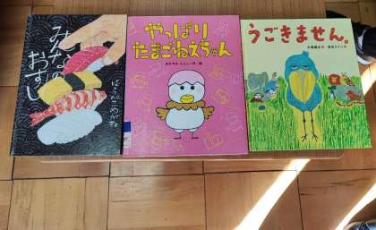 本日の読み聞かせは1年1組で「みんなのおすし」、「やっぱりたまごねえちゃん」、「うごきません」でした。