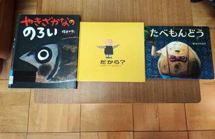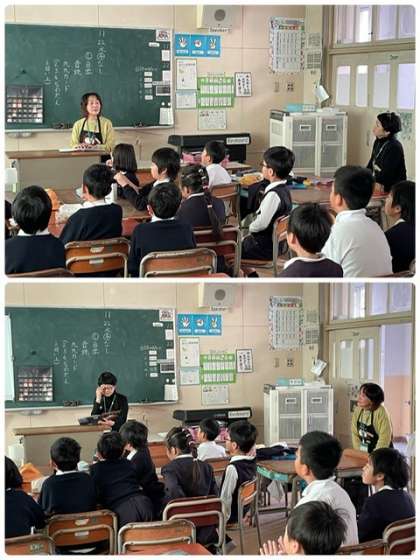 本日の読み聞かせは2年1組で「やきざかなののろい」、「だから?」、「たべもんどう」でした。