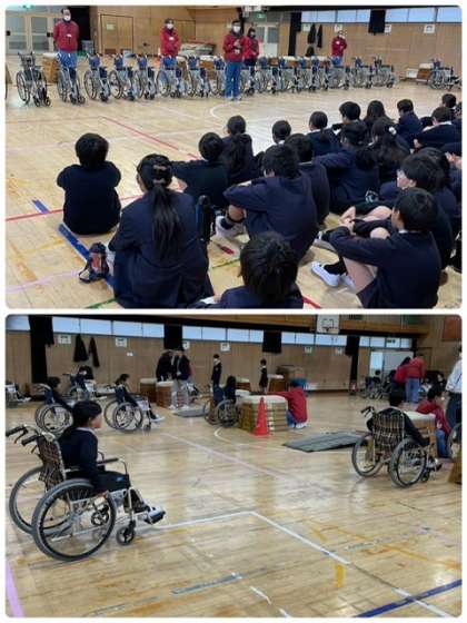 大阪市立心身障がい者リハビリテーションセンターの方々に学校に来ていただき、4年生が車いす体験をしました。