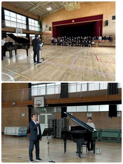 漫才を披露する学年。合唱を送る学年。そして校長先生からも歌のプレゼントがありました。