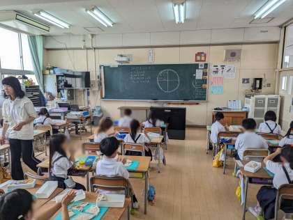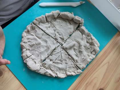 1年生は粘土工作でピザ作りをしました。粘土工作はこねるためにしっかりと力をこめる必要があり、指先の感覚などを養うのに効果的です。子どもたちはそれぞれ自分のイメージするピザを思い浮かべながら、ソーセージやチーズを作り生地の上に乗せていました。ピザの耳に見立てたところを「カリカリになってる。」と、本物を想像して作れました。