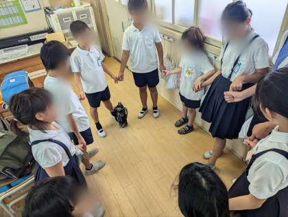 講堂で児童集会を行う予定でしたが、熱中症対策として各教室で行いました。普段と違う場所での集会に子どもたちは少しワクワクした様子でした。委員会の子どもたちは、はきはきとした声で説明の放送を行えました。ゲームは指キャッチゲームをし、音楽をよく聞いて止まった瞬間に指を掴むことができた低学年の子がとても喜んでいました。気温はこれからも高い日がありますが、臨機応変に対応していきます。