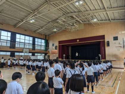 長かった夏休みも終わり、本日から2学期が始まりました。朝こちらを見かけて、自分から元気に挨拶をしてくれる子がたくさんいました。教室で久しぶりに友だちに会い、素敵な笑顔で話しかける姿も見られました。始業式では校長先生のお話を静かに聞き、2学期に向けて期待を膨らませているようでした。2学期も楽しく、たくさん学びのある学校生活にするため、教職員一同努めてまいります。