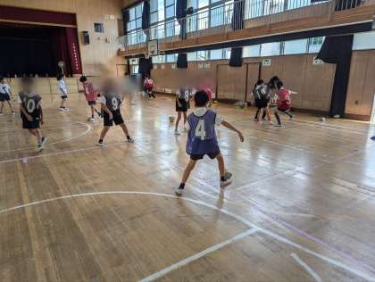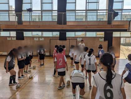 今日の授業では新聞紙とビニール袋で作ったボール使用しました。このボールはけっても転がりにくいのですが、それによりドリブルでボールキープがしやすく、足元での操作に重点を置いて練習をすることができます。後半に行ったゲームでは。子どもたちはうまく足元にボールをとらえ、守備役の子たちを追い抜いていました。