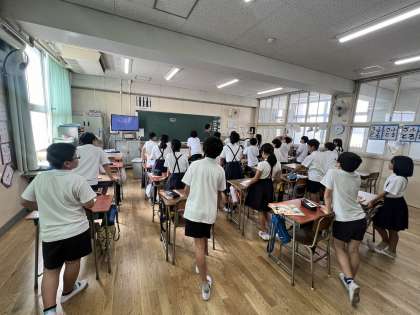 5年生の外国語では、現在「Can」を使った会話の練習に取組んでいます。子どもたちは「Can you」を使った質問を練習したり、それに「Yes,I can」と答えたりしています。使える表現が一つ増えるだけでも、自己紹介する際に説明できることが増えます。コミュニケーションの幅をより広くするために、どんどん会話に参加してもらいたいです。