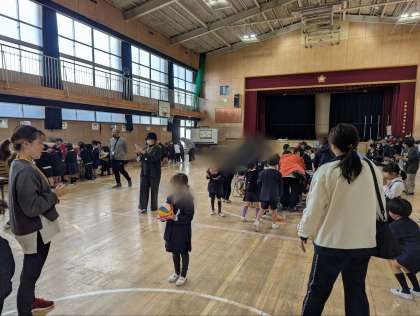 地域の方が体育館で昔遊びの体験をさせてくださいました。最近ではインターネットの発達とともに色々な昔遊びのおもちゃに触れる機会が減ってきています。1年生の子どもたちは色々なおもちゃの遊び方を教えてもらいながら遊びました。紙風船やめんこ、とんとんすもうにおはじきなど、どのおもちゃにも夢中になって遊ぶ姿を見ることができました。