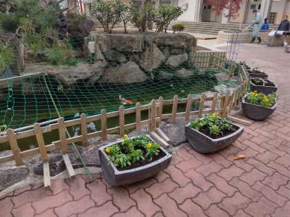地域の方、区役所の方、管理作業員さんが協力して、たくさんの苗が花壇やプランターに植えられました。これから花が咲き、華やかな池周りになると期待しています。