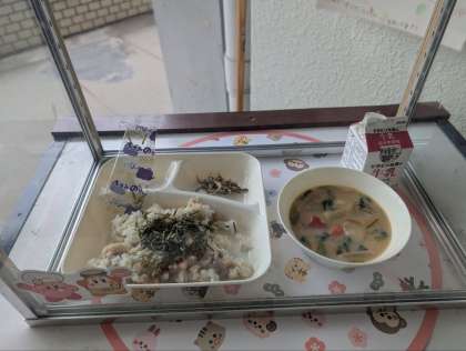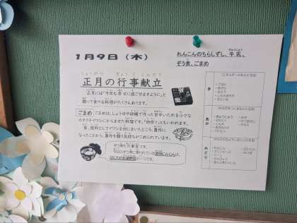 3学期初めての給食は、お正月の行事献立でした。れんこんのちらしずし、ぞう煮、ごまめとお正月らしいメニューを食べました。小学校では食育を通して日本や世界の文化に触れる機会を設けています。様々な角度から文化に対して興味を持つきっかけにしてくれればと思います。