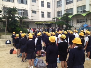 出発式です。児童62名全員で行ってきます。