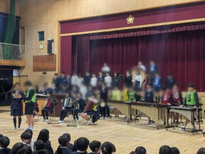 6年生はお礼として演奏とダンスを披露しました。これまでの経験やアイデアを活かし、最高学年らしい堂々とした発表で、会場を感動に包みました。小学校生活の集大成ともいえる素晴らしい演奏とダンスに、見ていた子どもたちは憧れの眼差しを向けていました。