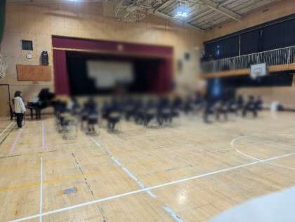 6年生は来週に控えた卒業式に向けて、練習を重ねています。本日は本番に備えて、BGMや司会も入れて練習を行いました。どの子もとても真剣な面持ちで、座り方や歩き方にも気持ちが表れていました。