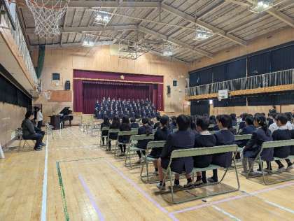 6年生が5年生を講堂に招いて、最後の練習をしました。5年生が来てくれていることもあり、6年生はこれまで以上に気持ちを込めて決意表明や門出の言葉を言うことができました。本番でも今日見せてくれた輝きを発揮してほしいです。