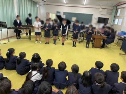 今年度もあと2日。それぞれの学級で大掃除や最後のまとめをしました。そんな中5年生の子どもたちが、1年生の子どもたちへ合奏のプレゼントをしました。曲はルパン3世のテーマです。リズミカルに演奏する様子に1年生の子どもたちはとてもうれしそうに聴き言っていました。