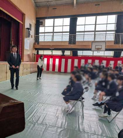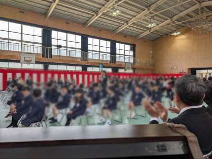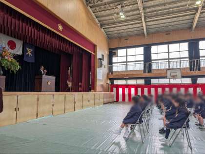 式では、校長先生のお話をまっすぐな目で見つめながら、しっかりと耳を傾ける新入生の姿が印象的でした。また、担任の先生の紹介の場面では、バドミントンを上手にする様子を見て驚いたり、喜んだりする新入生たちの表情がとても素敵でした。