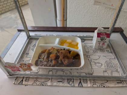 学校給食の様子です。今日の献立はカツカレーライスでした。