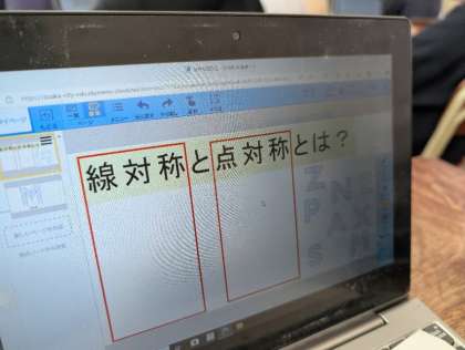 また「対称な図形」の学習を進める中で、対称であることを証明するための条件に当てはまる図形はどれか、図を回転させたり頂点同士を合わせたりすることで、見つけることができました。