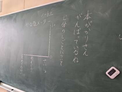 道徳で係活動をする子どもたちの文章を読みました。初めのころ頑張っていた図書係の仕事を続ける中で、だんだんとめんどうになってしまった気持ちが、まわりの人たちからの声かけを受けてまた頑張る気持ちが芽生えてくるという内容でした。