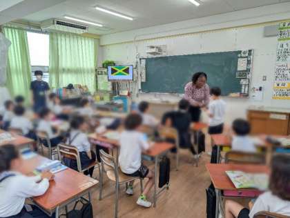 外国語の学習で、本校C-netのロイ先生と自己紹介クイズをして楽しみました。子どもたちはロイ先生の出身地や趣味はなんだろうと考えて、色々な答えを発表していました。外れても大丈夫だという気持ちでどんどん答える姿が素敵でした。