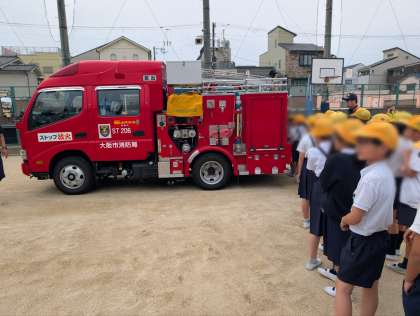 給食室からの火災を想定した避難訓練を行いました。はじめに各教室で火災が起こった時に取るべき行動や気を付けるべきことを確かめた後、運動場に避難しました。静かに素早く移動することができ、真剣に取り組むことができました。