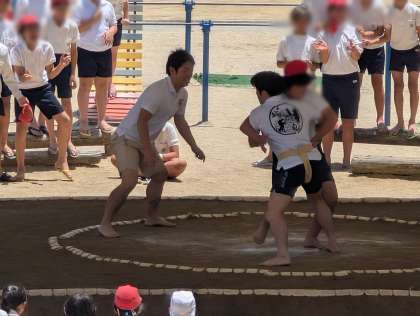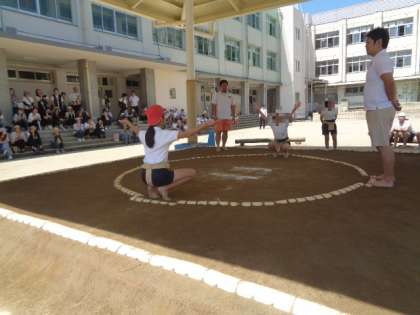 6年生にとって、城東小学校で行う最後のすもう大会が行われました。6年生の子どもたちは取組をする子の紹介から自分たちで行い、自主性の見られる大会進行ができました。取組そのものはさすが最高学年と思えるような、ぶつかる瞬間の音まで伝わってくる取組がたくさんありました。どの子も真剣にすもうを取る姿が素晴らしかったです。エキシビションとして行われた横綱と先生の取組も大きな歓声が上がり、とても盛り上がりました。勝つ喜びも負けた悔しさもいい思い出として、この先思い出してほしいです。