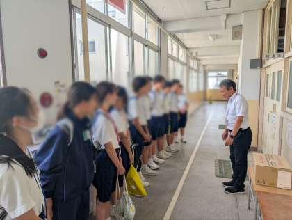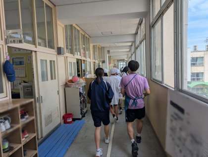 今日は朝の登校指導から参加をしました。城東小学校の子たちは中学生の子たちからあいさつをされると、元気に挨拶を返していました。今日も職員室での手紙の準備や掃除、給食指導の場面など、色々な活動に参加してもらいました。終わりに2日間の感想を聞くと、「子どもたちと関われたことが楽しく、うれしかったです。」と伝えてくれました。