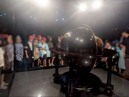 午後から雨予報でしたが、子どもたちは元気に学校を出発し、万博へ遠足に行きました。パビリオンも色々とめぐることができ、「夜の地球」館では、金と黒で表現された大きな地球儀のきれいさに、子どもたちからも「すごくきれい!」と感想を話し合っていました。途中雨が降り始めてからも、施設内のルールを守りめぐることができました。色々なものが見られた充実の1日となりました。