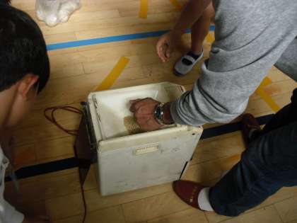 5年生が、鴫野西で「やまとや米店」の代表をされている、松井さんからお米の話を聞かせてもらいました。稲から「脱穀」「もみすり」「精米」の体験もしました。