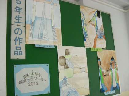 4年5年6年の廊下の掲示物です。6年生は修学旅行の写真を展示していますので、購入の申し込みをしてください。