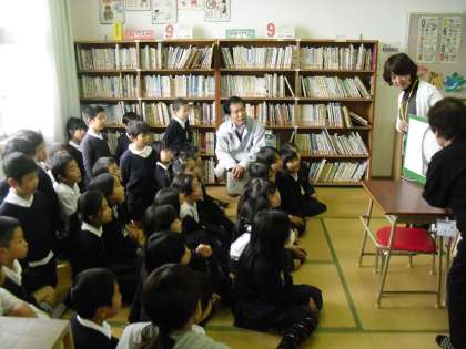 図書館ボランティアの方に来ていただき、読み聞かせをしていただきました。