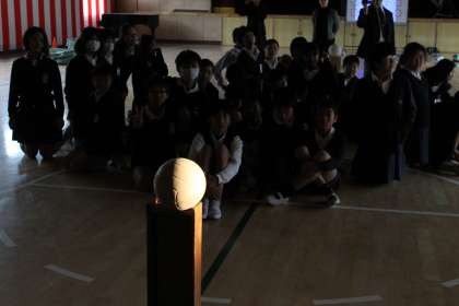 城陽中学校からも先生方が来られ、授業を通じた交流を進めています。スポットライトとバレーボールうを使った実験はとても迫力があり、よくわかる実験でした。