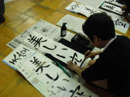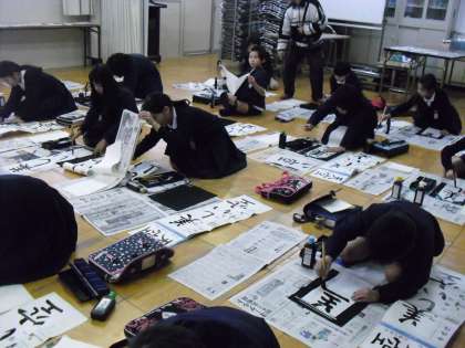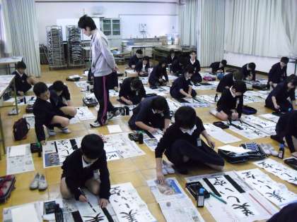 4年生が多目的室で書初めをしました。ピンと張り詰めた空気の中で集中して書くことができました。