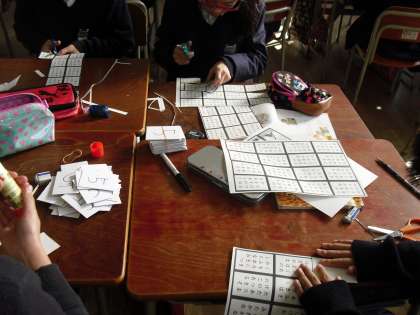 4年生が百人一首を手作りしていました。