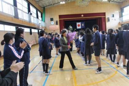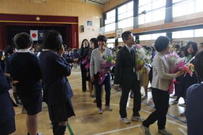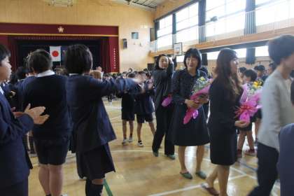 教職員の方々の退場。子どもたちも涙々。別れを惜しみました。