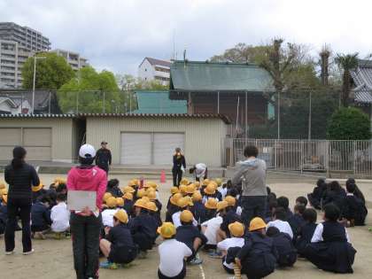 火災発生を想定した避難訓練を行いました。みんな速やかに運動場に避難することができました。
