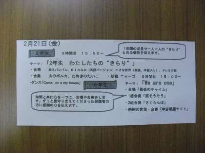 来週、18日(1年・4年)、20日(3年・5年)、21日(2年・6年)に学習発表会があります。