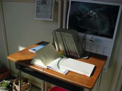 童謡作家・詩人の「まどみちお」さんが2月28日、104歳で亡くなられました。1909年(明治42年)生まれ。「ぞうさん」「1ねんせいになったら」「ふしぎなポケット」「やぎさんゆうびん」など、だれでも知っている童謡の歌詞を作った人です。校長室の前に、詩集(12巻)を置きました。