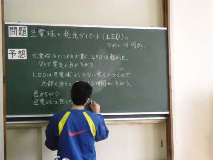 豆電球とLED電球の違いを調べる実験です。