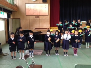 1年生が入学式の練習をしています。一年間でこんなに成長しましたよと誇らしげな感じです。