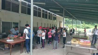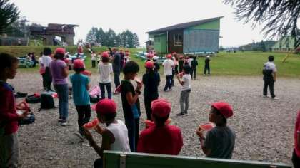 宿舎に戻ってきておやつのスイカをみんなで食べました!