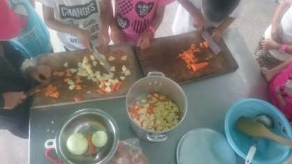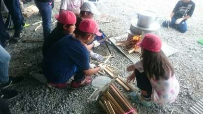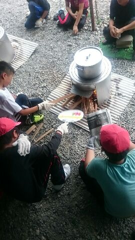 火をつける、材料を切るなど、すべて自分たちの力でやっています。出来上がりが楽しみです!
