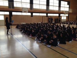 2年生から6年生が体育館に集まって始業式がありました。新しい教職員の紹介、転校してきた子どもの紹介のあと、学級担任の発表がありました。すべての学年で学級編成替えもありました。