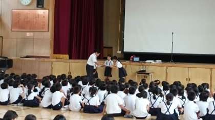 2学期がスタートしました。夏休み中に様々なスポーツ大会が開催されました。一輪車やソフトバレー、水泳などで活躍した児童への表彰が行われました。