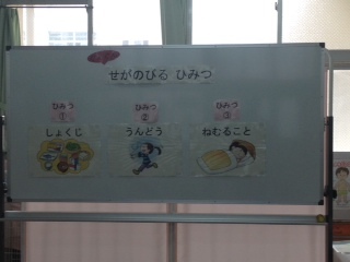 4年生の発育3測定でした。今日のテーマは「ぐんぐん背が伸びる」です。絵本を読んでもらいました。