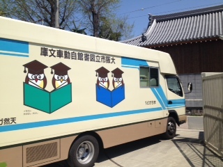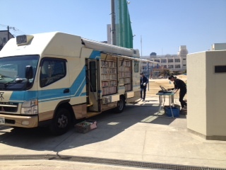 大阪市立中央図書館から自動車文庫(まちかど号)が月に一回巡回してきます。一学期は、あと、5月19日、6月10日、7月8日の11時35分から0時15分までです。是非、ご利用ください。