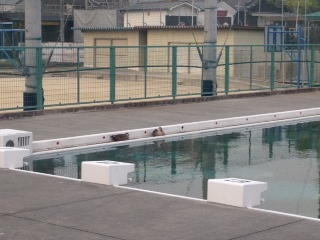 プールサイドに何かがいました。
