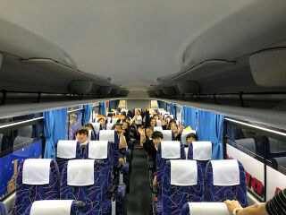 6年生59名全員が伊勢志摩方面への修学旅行に出発しました。バスは9時20分現在、上野パーキングエリアを通過しました。元気にバス内でのレクレーションを楽しんでいます。