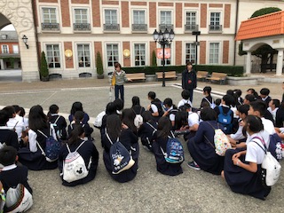 宿舎を出発してスペイン村に到着しました。みんな元気に活動中です!!