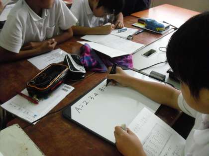 6年生の授業研究会がありました。本年度、城東小学校では「算数」の授業研究を進めています。今日は、2:3:4の比の勉強をしました。